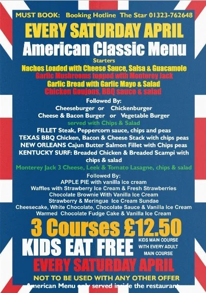 Back to All Events american saturday 3 courses for £12.50 Saturday 18 April 2026 12:00 19:30 Google Calendar ICS