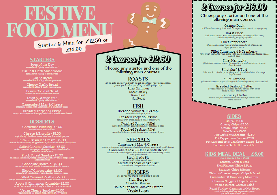 Back to All Events Christmas Menu Sunday 1 December 2024 12:00 Sunday 8 December 2024 19:00 Google Calendar ICS