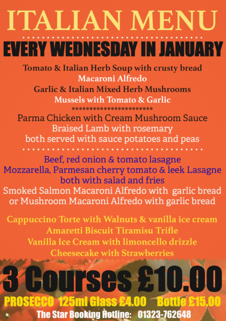 Back to All Events Italian menu 3 course for £10.00 Wednesday 22 January 2025 12:00 19:00 Google Calendar ICS