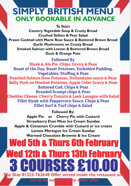 Back to All Events british menu 3 courses for £10.00 Wednesday 5 February 2025 12:00 19:00 Google Calendar ICS